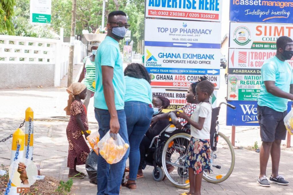 To celebrate the Easter Festive with the most vulnerable in Society, our team gave out 1,500 well-packaged foods (kenkey with fish /sardine, paster(Indomie), Jollof and chicken, rice and stew, waakye with fish and egg). With the help of our sponsor (Fruitland), we distributed 1,120 bottles of juice.